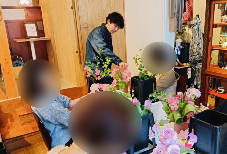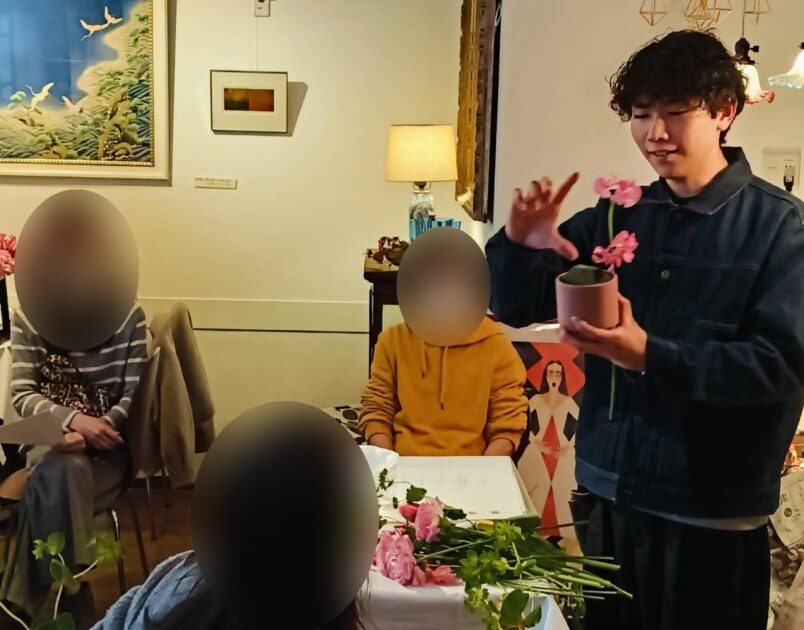 さて、春の気分満載のお花に囲まれながら開催されたワークショップですが、最後はお客様と作品ご一緒に秋田さんがカメラに収めていきます。撮影された写真はすぐにお客様の携帯に転送(私の古いカメラではできない(笑))、やはり優しい秋田さんならでは気遣いです。そんな秋田さんのお花のワークショップ、次はどんなテーマで行われるのか、とても楽しみ。きっと、今まで意識していなかった新しいお花の魅力を発見することができますよ。